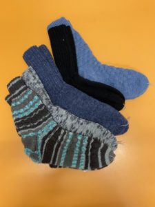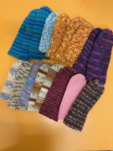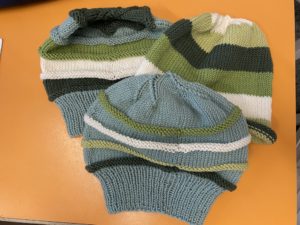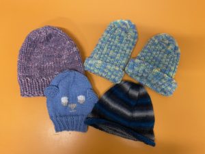 Wolle ist vorhanden, ebenso Strickmuster. Es können natürlich auch eigene Ideen umgesetzt werden.